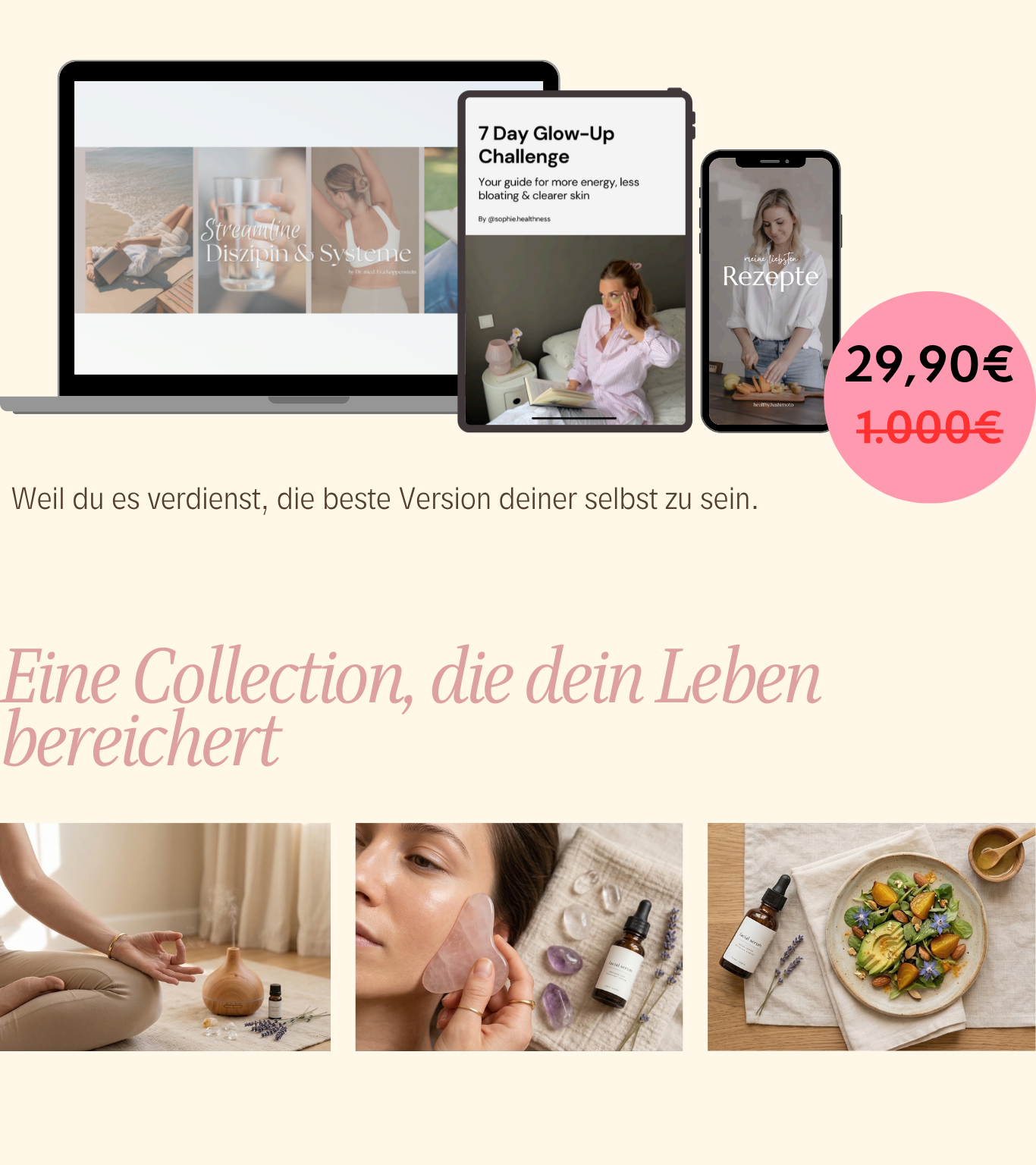 Der 14-Tage-Kurs, der dir zeigt, wie du deine Haut, Haare und Nägel von innen heraus transformierst - mit den richtigen Schritten, die wirklich etwas bewegen.